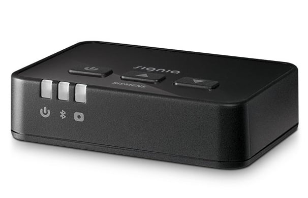 Transmiterul TV * conectează televizoarele fără funcționalitate Bluetooth la easyTek. În acest fel, puteți transmite fără fir sunetul direct în aparatul dvs. auditiv și vă puteți bucura pe deplin de filmul preferat. Accesoriu pentru telecomanda easyTek.